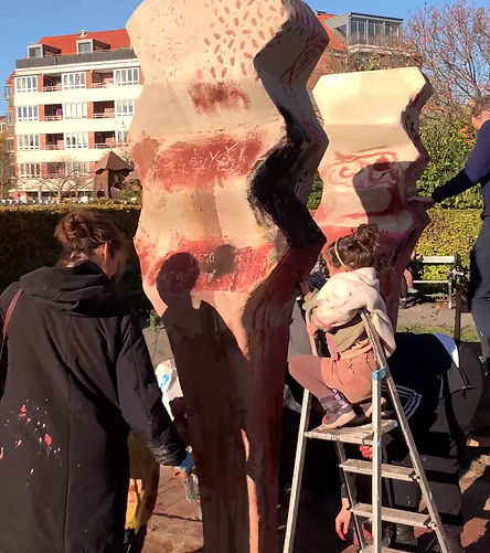 These sculptures were hand carved and the chalk coating was then applied. We then encouraged residents who attended the day-long workshop in October 2022 to paint the sculptures using earth pigments in a 'Neolithic Painting Workshop'.